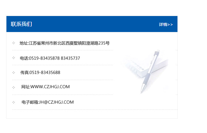 傳真:0519-83435688    郵編:213135    網址:WWW.czjhgj_com.sdaorong.com    電子郵箱:JH@czjhgj_com.sdaorong.com
